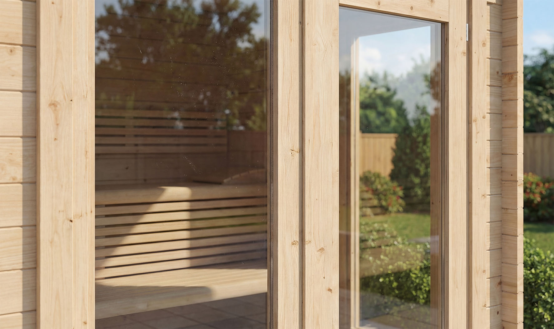 Side clear tempered glass window for the ideal nature sauna experience (5/16” thick)