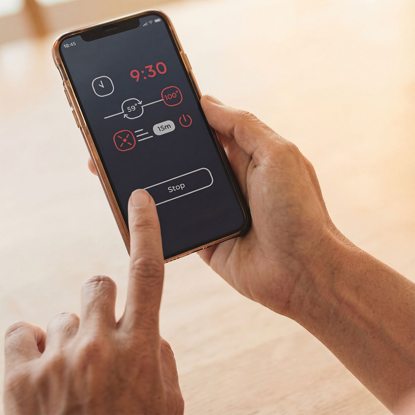 Controls heater output, climate device speed, temperature, and session duration.