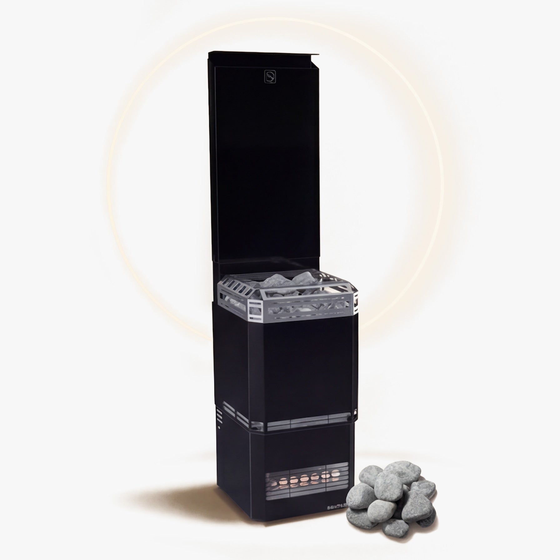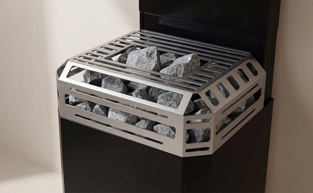 Large stone volume for soft, long-lasting steam and classic Nordic sauna feel.