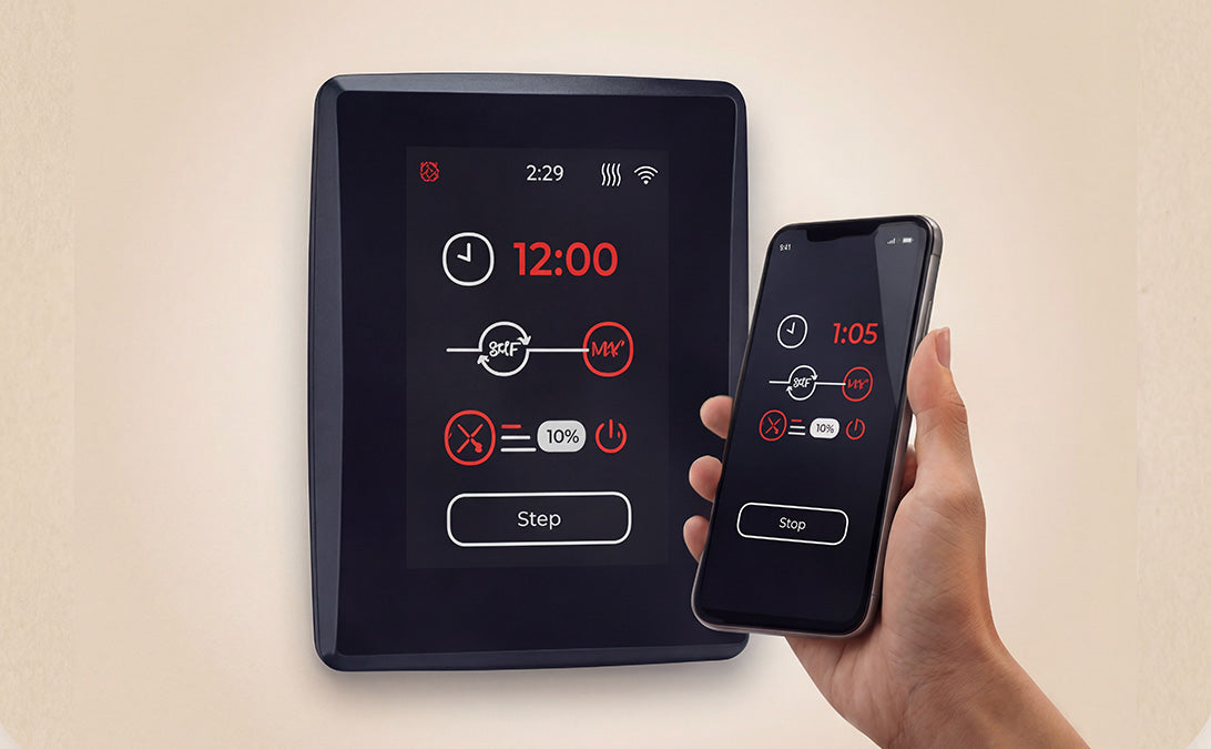Three preset sauna profiles from classic Nordic steam to mild relaxing sessions.